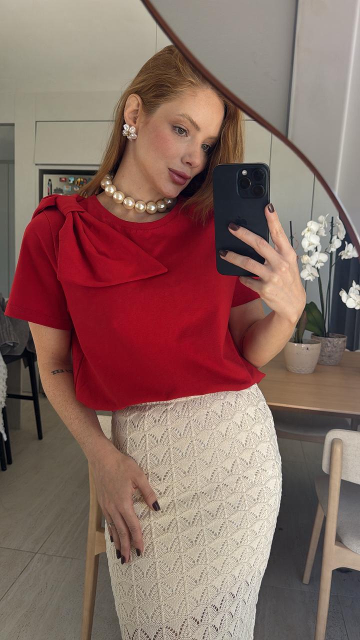 A T-shirt Laço ByGabriela é a combinação perfeita de charme, qualidade e conforto. Feita em 100% algodão malha 30.1, possui toque macio e leve, com acabamento em Ribana 2.1 com elastano no decote redondo para um caimento impecável. O reforço na costura de ombro a ombro oferece mais estrutura, enquanto o laço pregado na costura dá o toque exclusivo que só a ByGabriela tem.